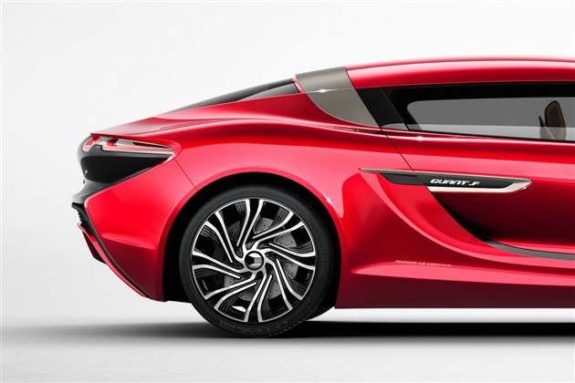 該車外身采用與Quant E不同的配色方案,還具有更大尺寸的外后視鏡。Quant F采用了鷗翼門設(shè)計,大尺寸的車門方便車內(nèi)的四名乘客上下車,整車長5257mm。