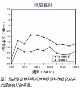 金屬外殼主要通過能量反射來提供EMI保護(hù)。當(dāng)多余的能量來自外殼外部時(shí),這是一個(gè)優(yōu)勢。當(dāng)外殼內(nèi)的電子設(shè)備輻射EMI時(shí),能量可被反射進(jìn)入電子設(shè)備,而不是消除。在另一方面,復(fù)合材料的外殼,提供了反射和吸收的結(jié)合。內(nèi)部電子輻射的能量被復(fù)合材料吸收和消散了。如圖3所示,在EMI測試中,以及在現(xiàn)實(shí)世界的表現(xiàn)上,復(fù)合材料可能比金屬的性能好。 copyright 123456