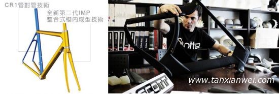 2007年SCOTT透過(guò)IMP模內(nèi)成型技術(shù),推出僅有790克重的ADDICT車(chē)架,在成功推出Tube-To-Tube管對(duì)管接合技術(shù)的同時(shí),SCOTT 團(tuán)隊(duì)立即致力研究消除皺摺的技術(shù),IMP模內(nèi)成型技術(shù),完全解決傳統(tǒng)一體式成型,在內(nèi)側(cè)轉(zhuǎn)彎處造成的縐褶,所產(chǎn)生的嚴(yán)重強(qiáng)度問(wèn)題。同時(shí)搭配管對(duì)管生產(chǎn)技術(shù),完美的再將碳纖領(lǐng)域再上一層樓,制造驚人的ADDICT的790克車(chē)架。 內(nèi)容來(lái)自123456