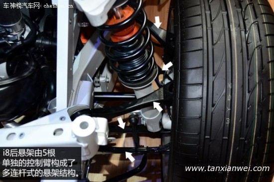 整個(gè)乘員艙的結(jié)構(gòu)由多層碳纖維復(fù)合材料拼合而成,輕量化和高強(qiáng)度是它最大的特點(diǎn),這樣的設(shè)計(jì)類似于F1賽車中駕駛艙的單體橫造結(jié)構(gòu)(由碳纖維復(fù)合材料構(gòu)成),而最終的效果就是i8的車身重量不到1.5噸。