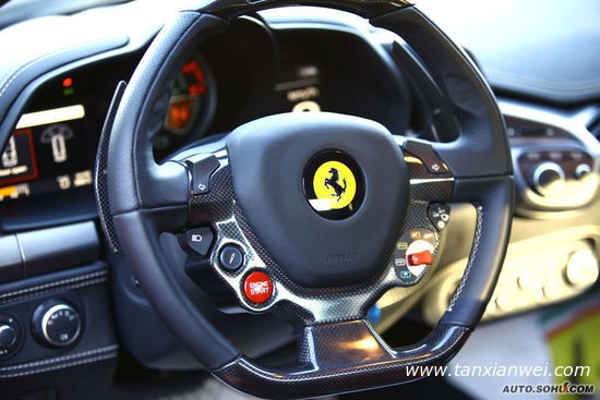 法拉利458 Italia敢以國家的名字命名,就代表它一定有非凡之處,也許它方向盤上復雜的按鈕和錯亂的儀表盤讓人抓狂,但沒人在乎,因為它實在是太美了,美到我寫下這部分文字的時候內心都是激動著的!它裝配的4.5LV8發(fā)動機性能出色,可以在加速上完爆前代車型F430,美到窒息的外形下是碳纖維打造的內飾,駕駛艙內每個細節(jié)都散發(fā)著高貴氣息!