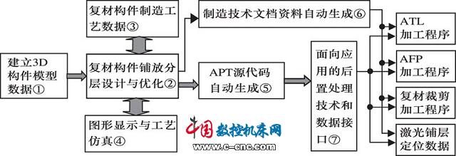 後置處理技術(shù)和數(shù)據(jù)接口是面向具體工業(yè)應(yīng)用開發(fā)的後置處理軟件,能夠針對具體應(yīng)用將APT源代碼處理成對應(yīng)的加工程序,并可通過相應(yīng)數(shù)據(jù)接口傳送到具體制造設(shè)備中,實現(xiàn)了零件從3D模型(產(chǎn)品設(shè)計)、工藝規(guī)劃到加工制造的無縫集成,提升了復材整體構(gòu)件制造自動化水平,縮短了構(gòu)件制造周期。