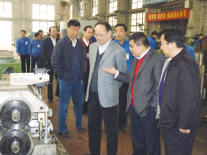 高勇深入邯鄲紡機(jī)機(jī)加工、總裝等分廠,現(xiàn)場(chǎng)考察企業(yè)的加工流程、技術(shù)能力、生產(chǎn)裝備。邯鄲紡機(jī)領(lǐng)導(dǎo)介紹了企業(yè)滌綸短纖后處理設(shè)備、粘膠纖維短纖維紡絲成套設(shè)備和長(zhǎng)絲紡絲設(shè)備等三大類產(chǎn)品和近年來(lái)研發(fā)特種纖維設(shè)備的情況,匯報(bào)了公司的研發(fā)理念、研發(fā)成果、用戶使用情況、公司產(chǎn)品的市場(chǎng)占有率。高勇對(duì)邯鄲紡機(jī)碳纖維、芳綸等生產(chǎn)設(shè)備開(kāi)發(fā)、市場(chǎng)投放給予高度的評(píng)價(jià),認(rèn)為邯鄲紡機(jī)的產(chǎn)品市場(chǎng)定位準(zhǔn)確,有一定的市場(chǎng)份額。高勇指出邯鄲紡機(jī)在做好設(shè)備研發(fā)制造的基礎(chǔ)上,要抓住企業(yè)搬遷改制的契機(jī),在企業(yè)升級(jí)改造和做精工藝上下功夫。