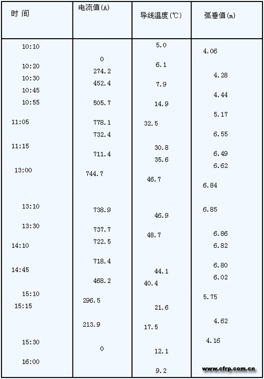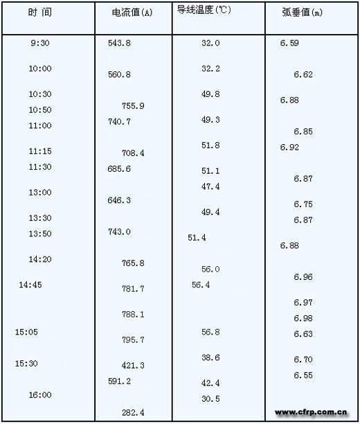 (2)夏季試驗:測量檔距 289 米;環(huán)境氣溫:上午陰28℃,下午晴32℃。