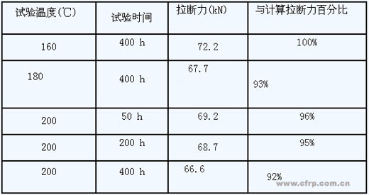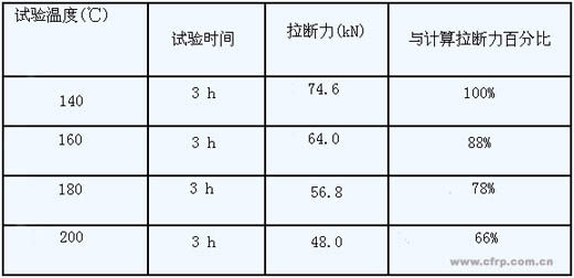 結(jié)果表明,碳纖維復合芯經(jīng)過不同加熱溫度和不同加熱時間后,恢復正常溫度后,芯仍能保持不小于90%計算拉斷力的拉力。