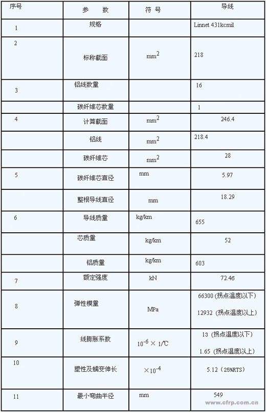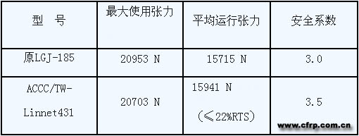 碳纖維復合芯導線的鋁面積218平方米,大于原LGJ-185導線182.4平方米的鋁面積,載流能力大大增加。下表反映了本次選定的碳纖維復合芯導線與原導線參數(shù)的對比情況。