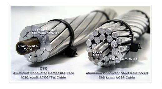 碳纖維復合芯采用合成碳纖維,全部都是非鐵磁性材料,而且不導電,所以不存在鋼絲材料引起的磁損和渦流損耗,在輸送相同負荷條件下,具有更低的運行溫度,可減少輸電損失約6%。外層采用導電率不小于63%IACS的鋁線。
