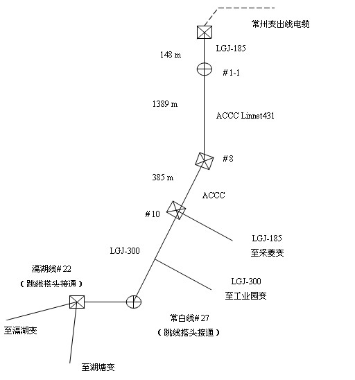 增容改造實施:將常州變出線前段架空線的主線原LGJ-185導線更換為ACCC導線,長度1.8km。