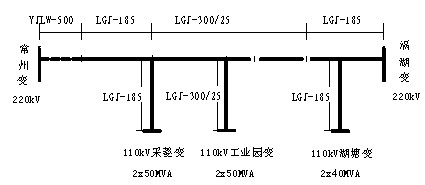 常白線上現(xiàn)狀接2個110kV變電所,分別是:110kV采菱變,2x50MVA主變;110kV工業(yè)園變,2x50MVA主變。另原先還接有110kV湖塘變(2x40MVA),因輸送容量不足,現(xiàn)已臨時斷開。