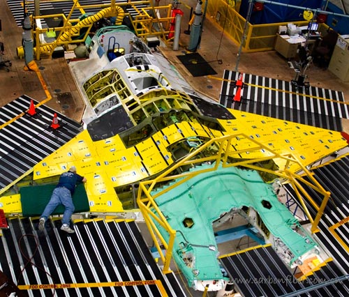 洛克希德馬丁公司在2001年10月項目中標,是F-35戰(zhàn)機的主要承包商。諾斯羅普格魯門公司和BAE系統(tǒng)公司是該項目的主要合作伙伴。這三家公司超過通過了12年的系統(tǒng)研發(fā)及驗證(SDD)階段,該階段包括生產(chǎn)19架戰(zhàn)斗機并完成全部相關(guān)測試工作。復(fù)合材料在F-35的研發(fā)和生產(chǎn)過程中始終扮演重要的角色。諾斯羅普格魯門公司在加州的Palmdale工廠完成中部機身的生產(chǎn);BAE系統(tǒng)公司在其英國Samlesbury工廠生產(chǎn)后部機身;猶他州的ATK公司生產(chǎn)機翼蒙皮;洛克希德馬丁公司負責(zé)前部機身的生產(chǎn)并在其Fort Worth工廠完成F-35總裝工作。F-35的首飛已被一推再推。主要的原因有設(shè)計的重量超重問題,但更頭痛的是經(jīng)費的制約。據(jù)美國《每日航宇》報道,美國會撥款委員會從2004財年預(yù)算申請中削減了天基雷達、先進寬帶系統(tǒng)、導(dǎo)彈防御和F-35戰(zhàn)斗機等計劃的部分經(jīng)費。洛克希德馬丁公司無奈宣布:新一代F-35戰(zhàn)斗機的首飛時間從2005年秋天推遲到2006年8月。 幾經(jīng)波折,首架F-35戰(zhàn)機于2006年12月15日第一次飛上藍天。 copyright 123456