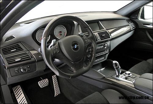 寶馬X6 M的車內(nèi)部分,方向盤以及儀表臺等碳纖維處處可見,凸顯大廠風(fēng)格。