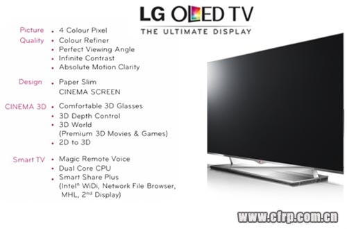 實際上,對比之前工程樣機,最新發(fā)布的最終出貨版改進最多的仍然是外觀,由黑色變?yōu)殂y色,背部也改為碳纖維材料打造。面板部分采用了氧化薄膜晶體管技術(shù)。新OLED面板通過采用氧化薄膜晶體管能夠在大幅度降低成本的同時,達到與低溫多晶硅基型面板同樣優(yōu)秀的畫質(zhì),而且依然維持白光WOLED和濾色片,WRGB四像素的模式不變,厚度保持在4mm,邊框也為超窄設(shè)計。當然,技術(shù)部分仍然有LG一貫的Cinema 3D不閃式技術(shù)和Smart TV智能電視功能,集成雙核心ARM處理器,支持WiDi無線顯示和MHL多媒體接口。 123456
