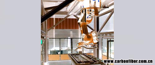 庫(kù)卡機(jī)器人懸掛安裝在一個(gè)長(zhǎng)達(dá)七米的線性滑軌上,否則,由于工作對(duì)象具有或凹或凸的形狀,機(jī)器人將無法夠及每一個(gè)點(diǎn)。這種居高臨下的工作方式也將機(jī)器人的工作空間增大到 5 x 3 x 1.5 米(長(zhǎng)x寬x高)。