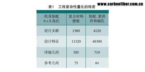 事實(shí)上,我們嘗試著量化大型航空結(jié)構(gòu)復(fù)合材料壁板的復(fù)雜性。舉個(gè)例子,對(duì)于一個(gè)由桁條和框分割的包含6×8 個(gè)島區(qū)的典型商用飛機(jī)的的航空壁板,得到如表1 所示的一組統(tǒng)計(jì)數(shù)字。創(chuàng)建了幾何參考并且保留在CAD 環(huán)境中。細(xì)節(jié)的幾何元素手動(dòng)創(chuàng)建但沒有在三維CAD 環(huán)境中提交并確認(rèn)。除了幾何數(shù)據(jù),對(duì)于復(fù)合材料蒙皮有11320 個(gè)非幾何特征,對(duì)于裝配件、緊固件、孔等有48300 個(gè)非幾何特征。這些特征不屬于三維CAD 或者PLM 的一部分。另外,這些關(guān)系沒有在三維CAD 或者PLM 中捕獲,也沒有在設(shè)計(jì)意圖中體現(xiàn)。在CAD 和PLM 軟件中有超過90% 的數(shù)據(jù)沒有捕獲并且沒有有效管理。 本文來(lái)自123