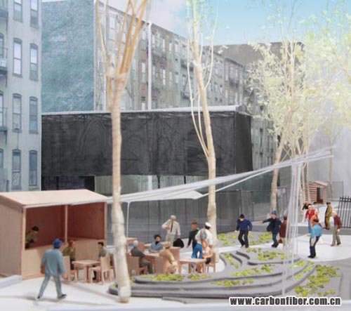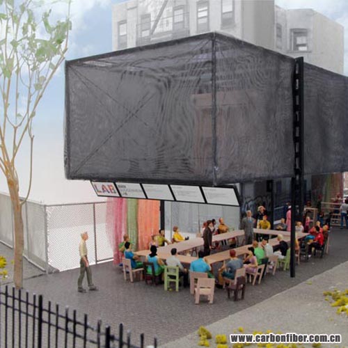 The first-ever building to have a carbon fibre structure is a mobile studio-cum-stage by Japanese architects Atelier Bow-Wow, which just opened in New York.