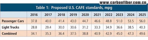 在美國,國家公路交通安全管理部門(簡稱“NHTSA”)和環(huán)境保護(hù)機(jī)構(gòu)(簡稱“EPA”)正在對“公司平均燃油經(jīng)濟(jì)(簡稱 ‘CAFE’)標(biāo)準(zhǔn)”進(jìn)行修訂,修訂后的標(biāo)準(zhǔn)將在2017~2025年間執(zhí)行。CAFE標(biāo)準(zhǔn)是美國政府針對所有被售賣到美國的轎車和卡車而設(shè)立的汽車燃油效率標(biāo)準(zhǔn)。這一被提議的“2017~2025標(biāo)準(zhǔn)”,要求汽車的燃油效率要有大幅度的提升。