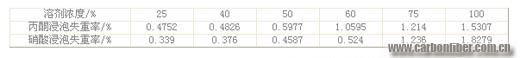 2.1.1 不同濃度溶劑浸泡后碳纖維失重率