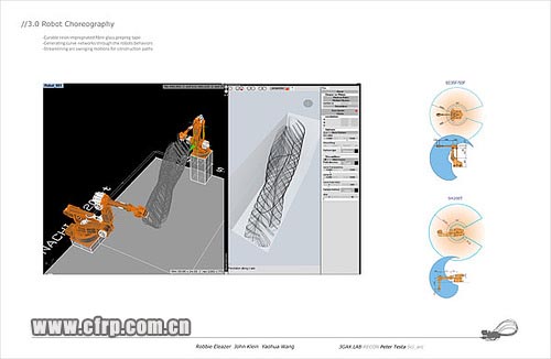 CarbonDesign 的Studio繼續(xù),上一周的時間,內部搞了一個小的competition,原因是Peter Testa整合了工廠的兩個機器人,然后把studio里每三個人分成一組,要求每組提出一個使用機器人的方法,然后作出Demo。