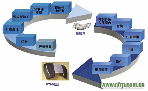 航空工業(yè)目前正采用樹(shù)脂傳遞模塑成型工藝(RTM),進(jìn)行大型高強(qiáng)度結(jié)構(gòu)件的生產(chǎn)。然而,其生產(chǎn)效率很低,有時(shí)還需大量的手工作業(yè)。在汽車的制造過(guò)程中,采用RTM工藝進(jìn)行零部件的生產(chǎn),主要是為了達(dá)到更好的視覺(jué)效果,并且只用于小批量生產(chǎn)的頂級(jí)轎車中。若能為量化生產(chǎn)開(kāi)發(fā)出一條可靠的自動(dòng)化RTM生產(chǎn)線,則纖維增強(qiáng)塑料(FRP)將能夠更加廣泛地應(yīng)用于汽車高強(qiáng)度承重結(jié)構(gòu)件的生產(chǎn)。