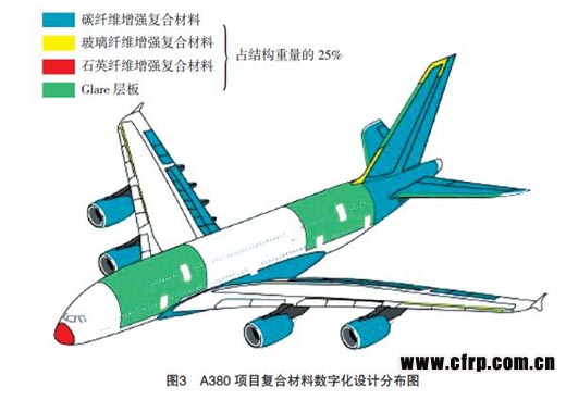 空客公司在整個A350 XWB項目、A380復(fù)合材料項目中完成了對所有復(fù)合材料零件的CATIA平臺設(shè)計,并使用復(fù)合材料設(shè)計模塊完成數(shù)字化的設(shè)計制造任務(wù)。以空客A380(圖3)為例:其復(fù)合材料用量占到結(jié)構(gòu)重量的25%,機身段、尾翼段、襟副翼的設(shè)計制造都是采用CPD模塊對設(shè)計制造流程進行優(yōu)化??湛凸镜墓こ處熡肅ATIA定義模具面、層的位置和邊界、泡沫夾芯的位置等。CPD軟件將層管理起來,為每個層自動生成表格,記錄非幾何信息與層的邊界、相關(guān)的標(biāo)記等聯(lián)系起來,確保層在制造過程中能正確定位。CPD的文檔功能,生成鋪層圖、鋪層表、材料表和序列表,從而使空客的復(fù)合材料設(shè)計工作時間降低了約50%,采用了新技術(shù)和軟件設(shè)計制造復(fù)合材料部件后,空客公司節(jié)省了5%~25%的初始設(shè)計時間,減少了45%的反復(fù)設(shè)計修改時間,極大地降低了手工鋪層的時間,達到了全過程控制復(fù)合材料鋪層,消除了反復(fù)試驗的過程,提高產(chǎn)品質(zhì)量的同時最大限度地降低了產(chǎn)品的廢品率。