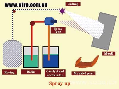 與手糊成型工藝相比,噴射成型工藝的效率提高了2~4倍甚至更高。其優(yōu)點(diǎn)是:由于使用無捻粗紗代替了手糊工藝的玻璃纖維織物,因而材料成本更低;成型過程中無接縫,這使得制品的整體性和層間剪切強(qiáng)度更好;可自由調(diào)節(jié)產(chǎn)品的壁厚、纖維與樹脂的比例以及纖維的長(zhǎng)度,因而滿足了汽車零部件的不同機(jī)械強(qiáng)度要求。由于噴射成型工藝具有效率高、成本低及產(chǎn)品尺寸形狀不受限制的優(yōu)點(diǎn),因此該工藝在國(guó)外汽車復(fù)合材料行業(yè)中,有逐步取代傳統(tǒng)的手糊成型工藝的趨勢(shì),例如,客車和重型卡車的很多前/后圍面板、側(cè)面護(hù)板、高頂及導(dǎo)流罩等都已由噴射成型工藝制作。